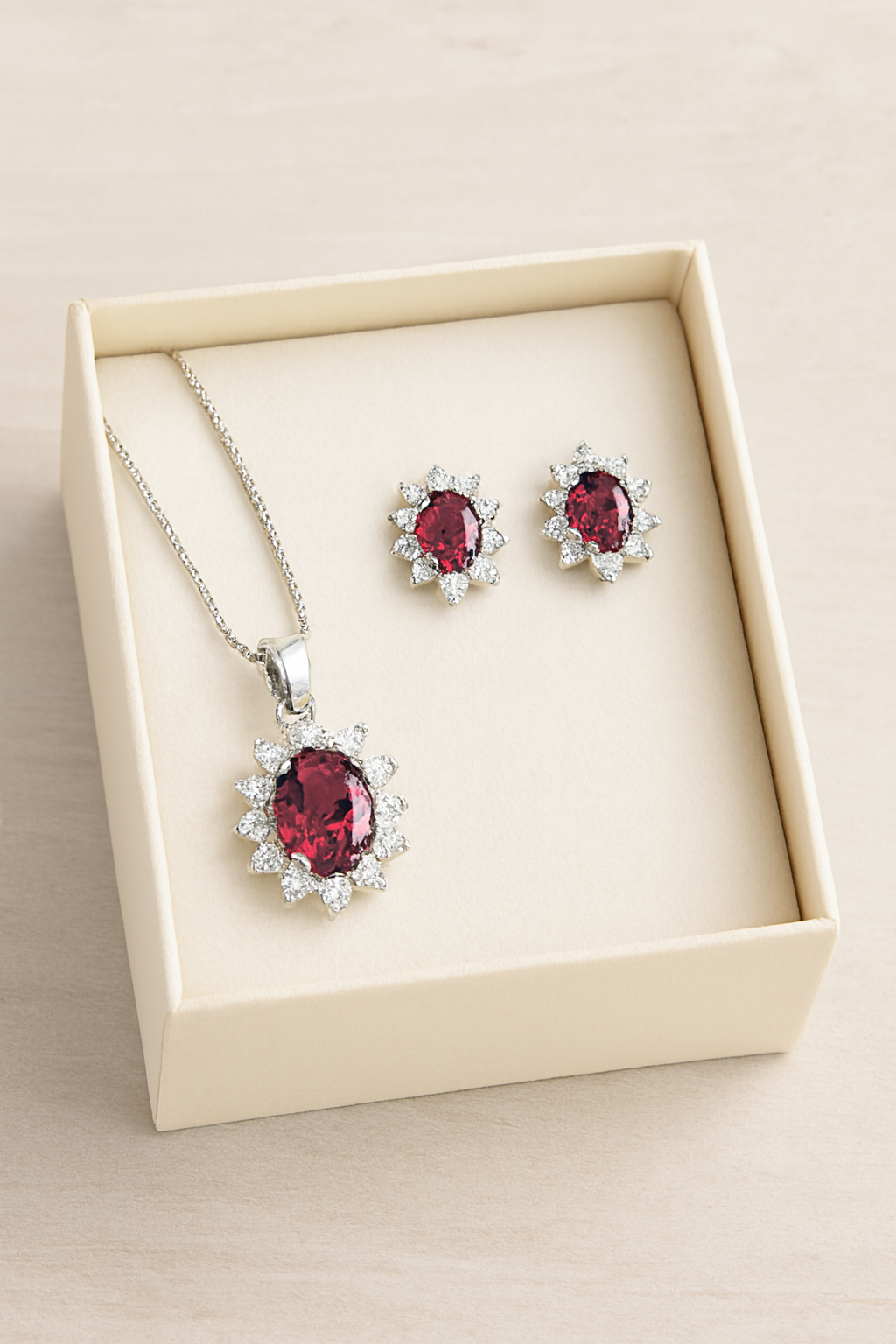 Descrizione del Prodotto: Eleva il tuo stile con questo esclusivo set di gioielli modello Halo. Caratterizzato da una pietra centrale taglio ovale circondata da un pavé di zirconi brillanti, questo design è studiato per massimizzare la rifrazione della luce.