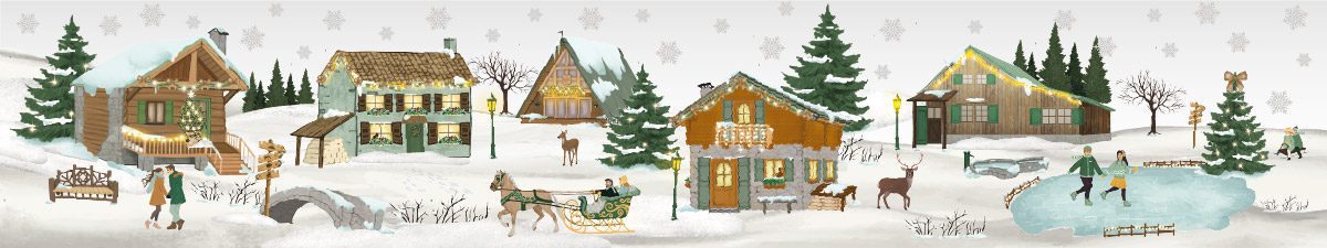 Astucci di Natale in feltro con cerniera e stampa villaggio e paesaggio natalizio. Misure: cm 15,5 x 9 H