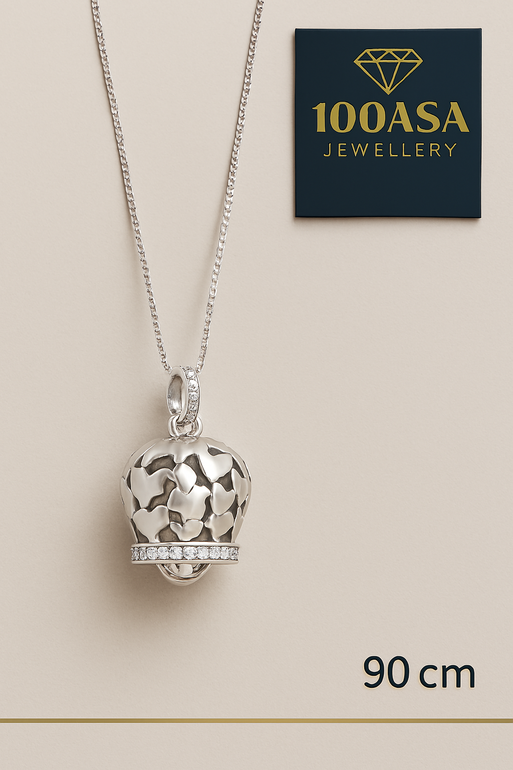 Un ciondolo in argento a forma di mongolfiera, traforato con cuori stilizzati che evocano amore, leggerezza e protezione. Alla base, una fascia di zirconi luminosi incornicia la forma con eleganza. Il ciondolo è sospeso a una catena box a maglia veneziana da 1 millimetro, con lunghezza da 90 cm, sottile e lucente, con chiusura a molla e tag inciso “S 925”.