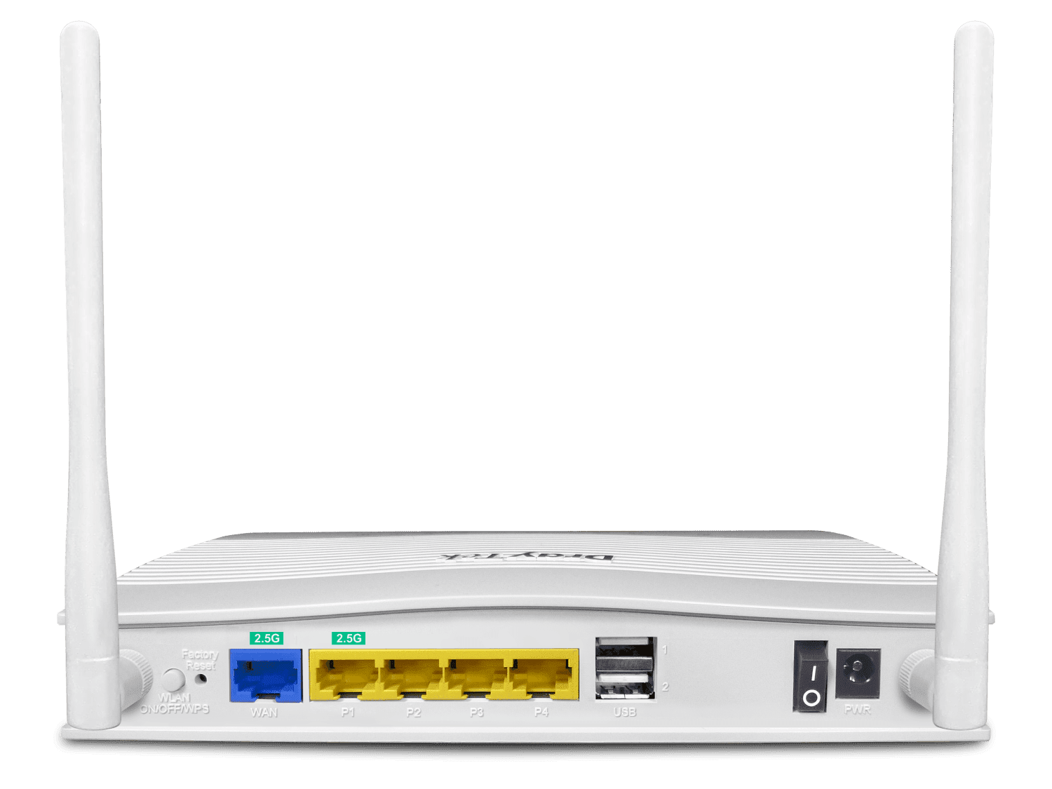 - Porta Gigabit Ethernet WAN (WAN2): Dispone di una porta Gigabit Ethernet configurabile come seconda WAN. Questa porta può essere utilizzata per collegarsi a un modem in fibra ottica (FTTH), un modem via cavo, o qualsiasi altra connessione Internet basata su Ethernet.
