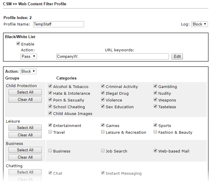 - Filtro Contenuti Web: Permette di bloccare l’accesso a siti web basati su URL, parole chiave o categorie (es. social media, giochi, siti per adulti), utile per la produttività aziendale e il controllo parentale.