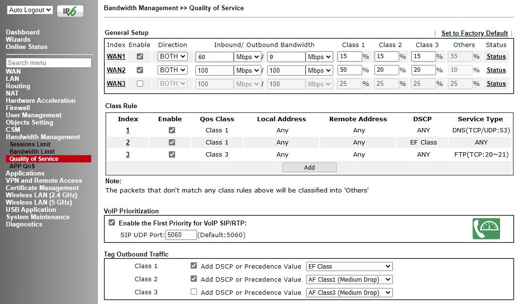 - Quality of Service (QoS): Prioritizza il traffico di rete (es. chiamate VoIP, video conferenze, dati critici) per garantire prestazioni ottimali anche in momenti di carico elevato.