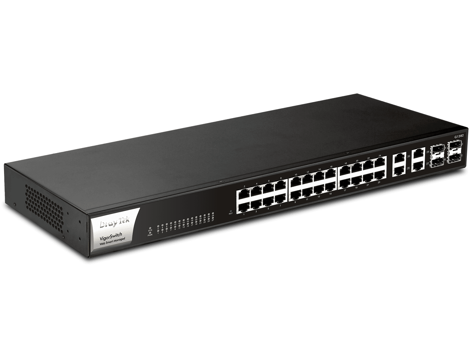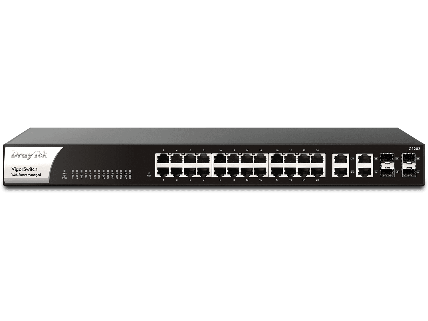 In sintesi, il DrayTek VigorSwitch G1282 รจ uno switch Gigabit completo e affidabile, ideale per aziende che cercano una soluzione di rete gestita, sicura e scalabile, senza la funzionalitร Power over Ethernet (PoE) che รจ invece presente nel modello P1282.