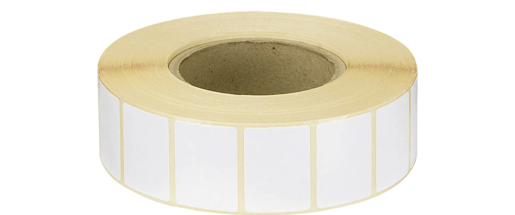 Rotoli etichette adesive mm100(L) x mm72(H), 1750 etichette a rotolo in carta vellum (si stampano con ribbon cera), foro centrale da 76mm. In confezioni da 4 rotoli