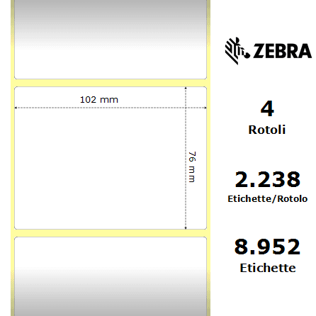 - Dimensioni etichetta: 102 mm (larghezza) x 76 mm (altezza).