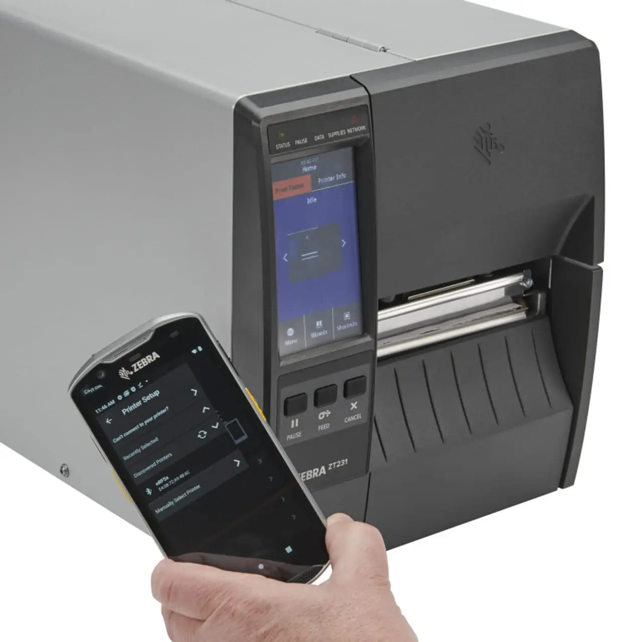 Stampante di etichette industriale Zebra ZT231. Si tratta di un modello progettato per ambienti industriali leggeri, logistica, medicina e vendita, grazie alla sua robusta struttura interamente metallica.