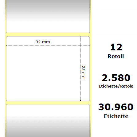 Rotolo di Etichette Termiche Dirette 32×25 mm (Foro Centrale 25 mm)