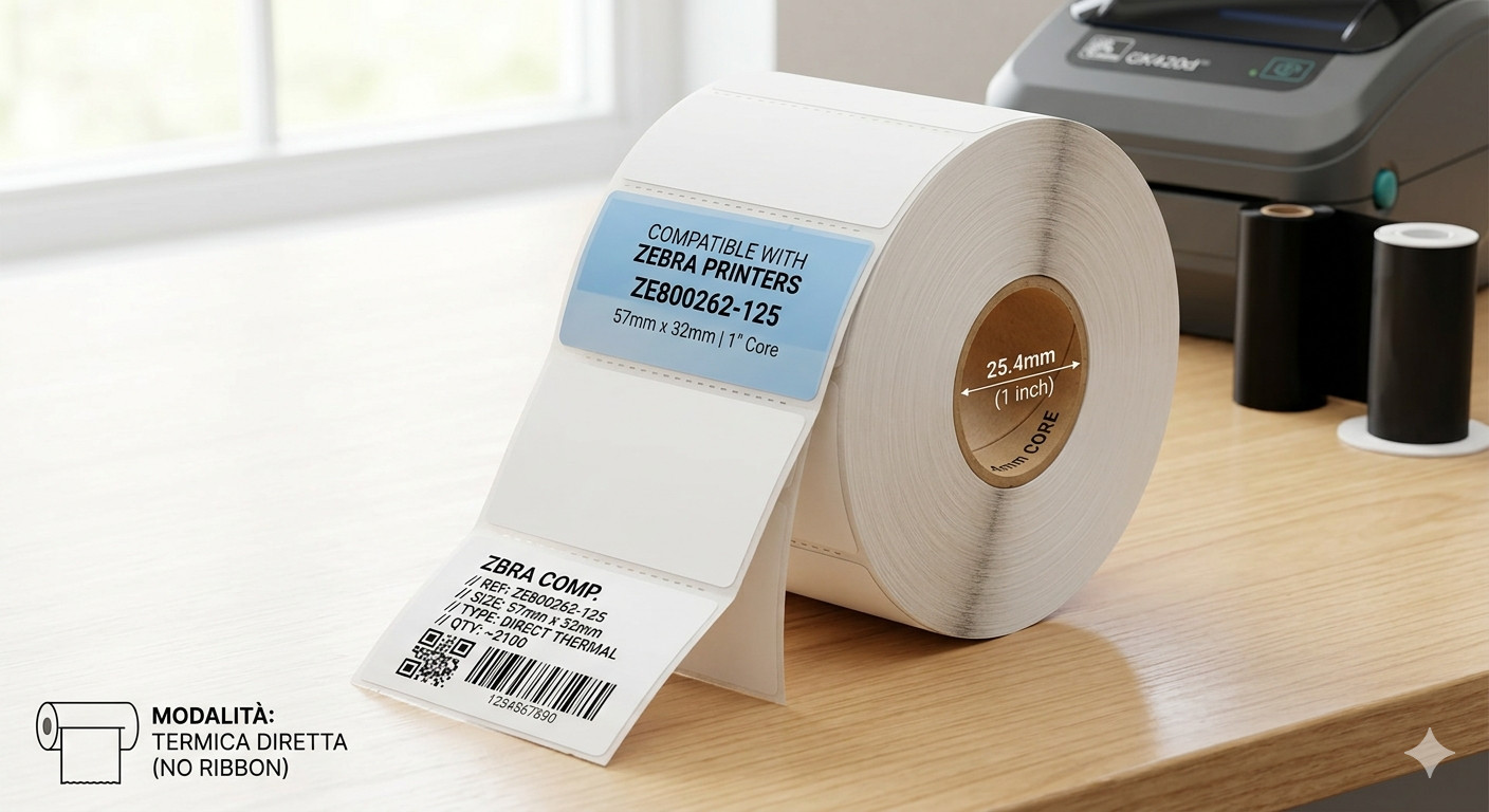 Altre Marche: Compatibili anche con stampanti TSC, Honeywell e Brother (serie TD) che supportano rotoli con anima da 1 pollice.