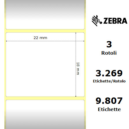 Rotolo etichette 8000T Lab Resist 22mmx18mm a trasferimento termico in poliestere con adesivo acrilico permanente. Resistente agli strappi e all’acqua.