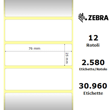 - Dimensioni: Le etichette hanno un formato di 76 mm x 25 mm (larghezza x altezza).
