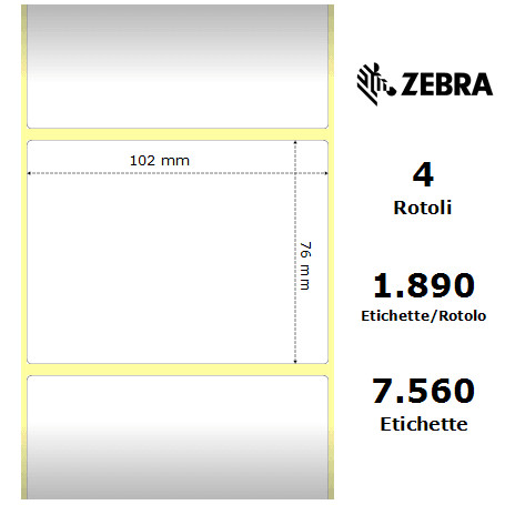 - Diametro interno del rotolo (anima): 76 mm (3 pollici), rendendole compatibili con stampanti termiche industriali Zebra (es. serie ZT, Xi, S4M, ZM, ecc.).