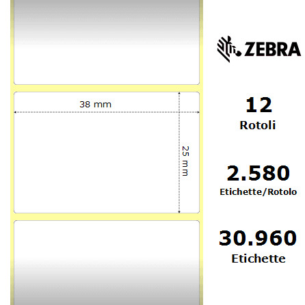 Zebra Z-Perform 1000T rotolo etichette 38×25 f25