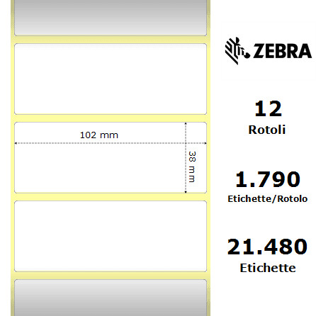 - Dimensioni delle etichette: 102 mm (larghezza) x 38 mm (altezza).